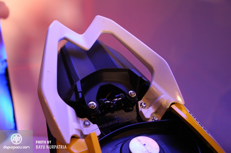 | Tay dắt sau thiết kế khá độc đáo. Bình xăng được bố trí phía dưới yên xe. |