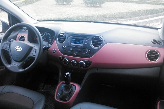 | Thiết kế bên trong của Grand i10 khác biệt với kiểu chia mảng khối theo màu sắc. Nhờ kiểu sắp đặt mới này mà khu vực táp-lô có cảm giác rộng hơn và đặc biệt sẽ sạch sẽ hơn trong quá trình sử dụng lâu dài |