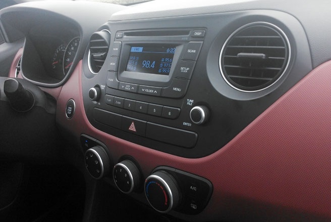 | Thiết kế bên trong của Grand i10 khác biệt với kiểu chia mảng khối theo màu sắc. Nhờ kiểu sắp đặt mới này mà khu vực táp-lô có cảm giác rộng hơn và đặc biệt sẽ sạch sẽ hơn trong quá trình sử dụng lâu dài. |