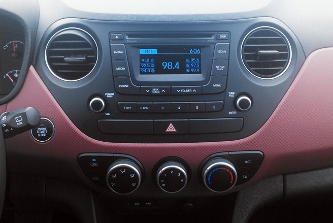 | Hệ thống giải trí gồm bộ thu radio, đầu đọc đĩa CD, cổng kết nối AUX/USB tích hợp với 4 loa kết tiêu chuẩn. Phiên bản Grand i10 1.25AT còn được trang bị cả chức năng thoại rảnh tay Bluetooth. |