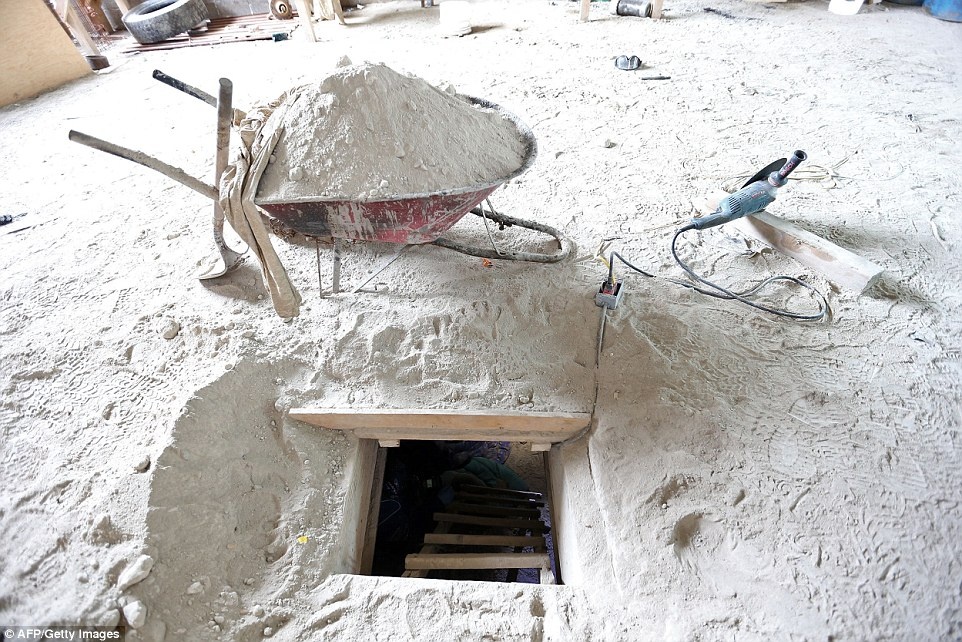 Phía còn lại của đường hầm nối liền với căn nhà đang xây dở nằm gần nhà tù. Đây là nơi những kẻ lập kế hoạch vụ vượt ngục ở trong thời gian đào đường hầm và cũng là nơi Guzman thoát. Ảnh: Reuters |