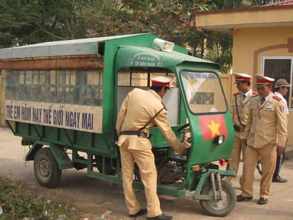 Xe 3 bánh chở học sinh tại trường tiểu học Phú Linh. |
