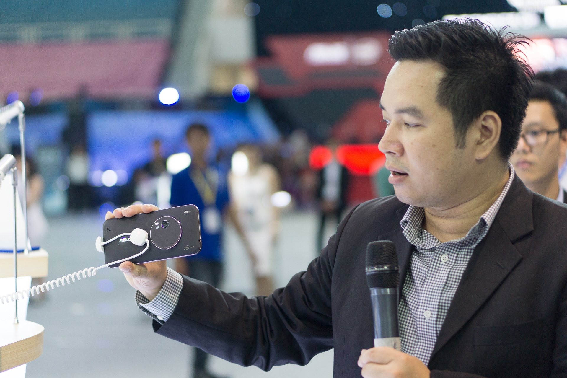 Mẫu smartphone chuyên chụp ảnh của Asus đang được trưng bày tại triển lãm Asus Expo 2015 tại TP HCM. Dù ra mắt từ tháng 1, đến cuối năm nay Zenfone Zoom mới được chính thức lên kệ.