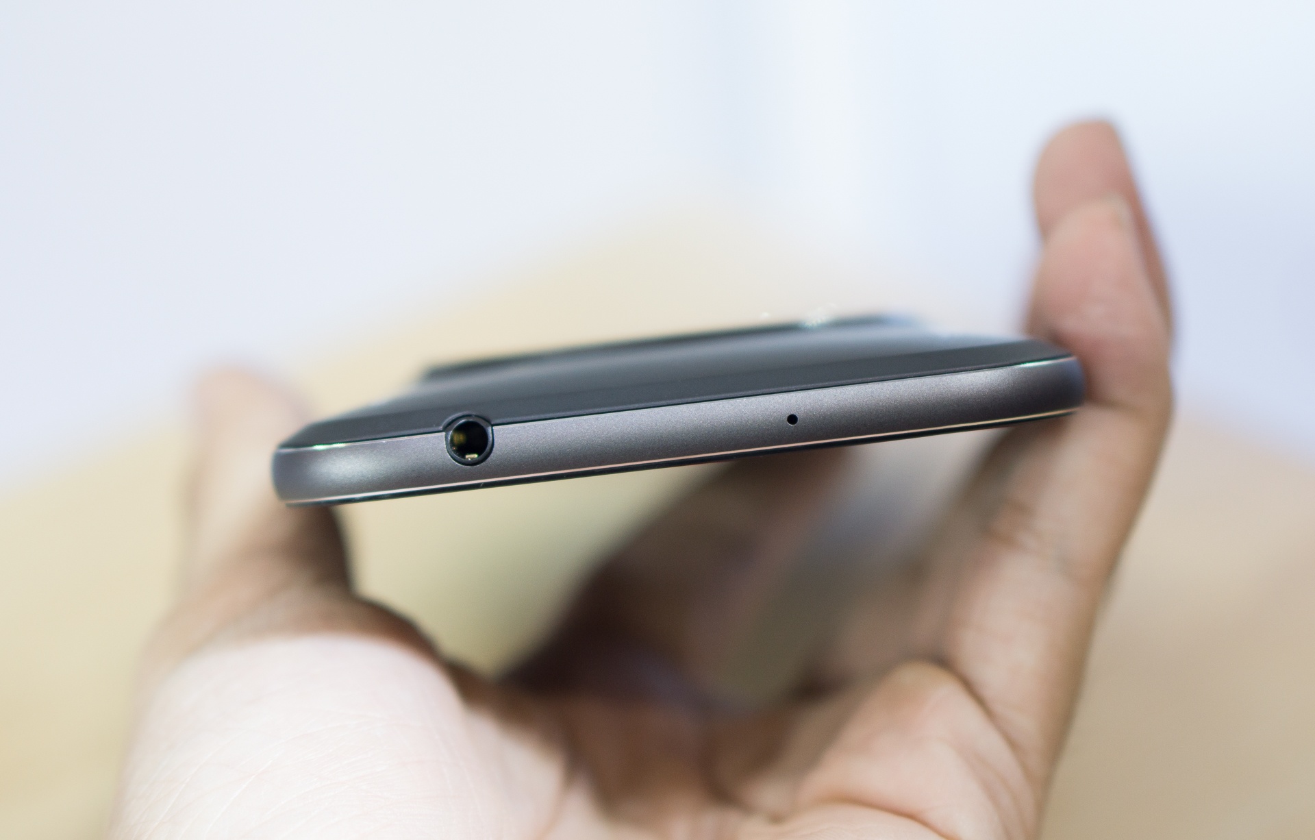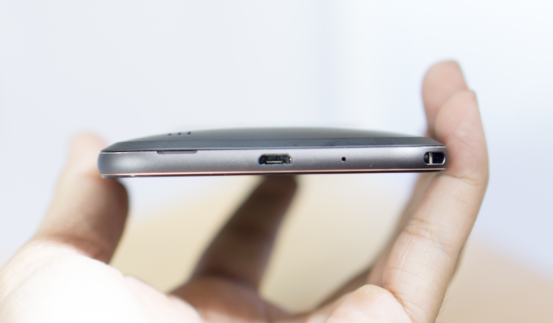 Cạnh dưới của Zenfone Zoom là cổng Micro USB, mic thu âm và rãnh nhỏ để xỏ dây đeo tay.