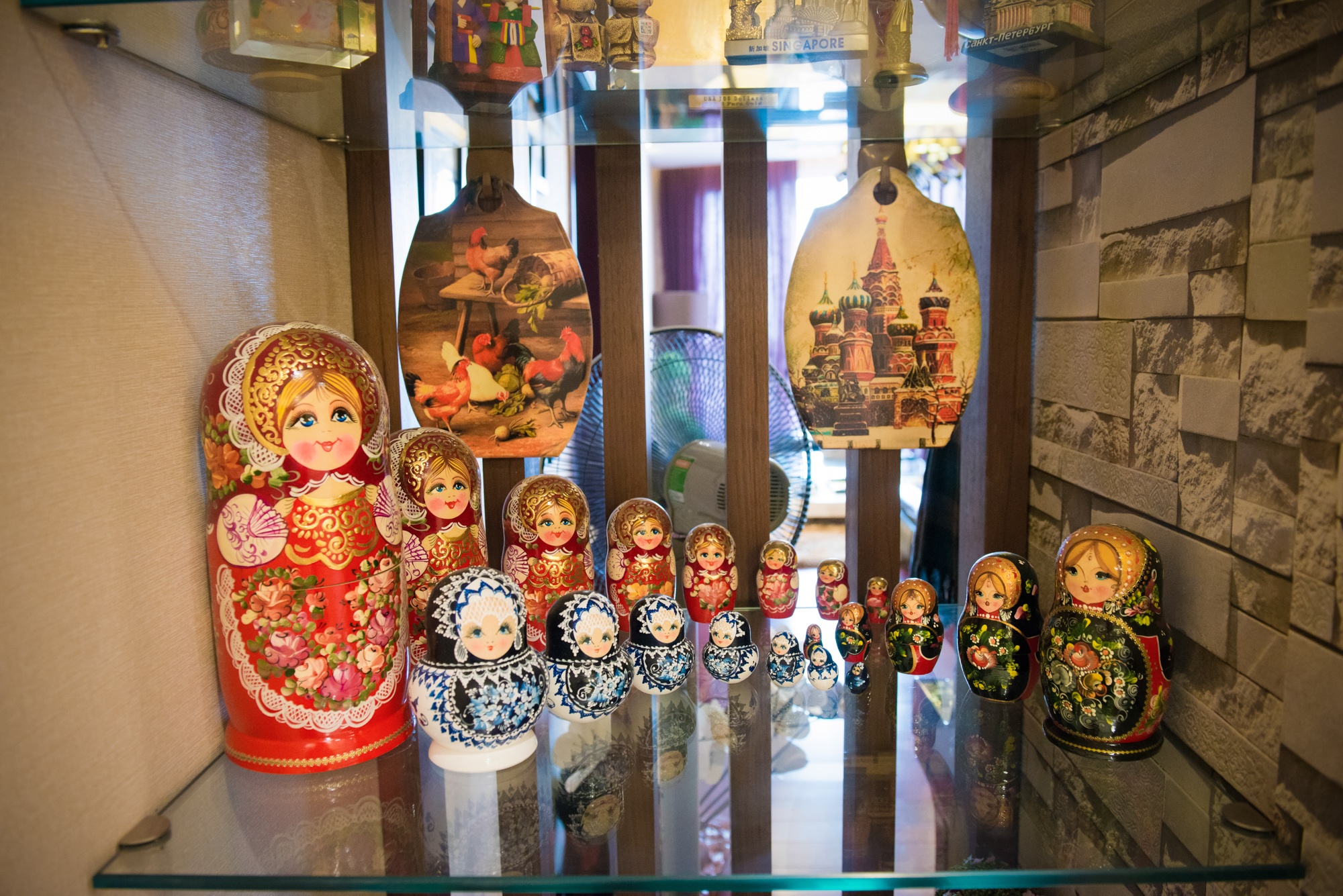 Trong bộ sưu tập của một người từng du học ở Nga như Hải Anh không thể thiếu những con búp bê Nga bằng gỗ.