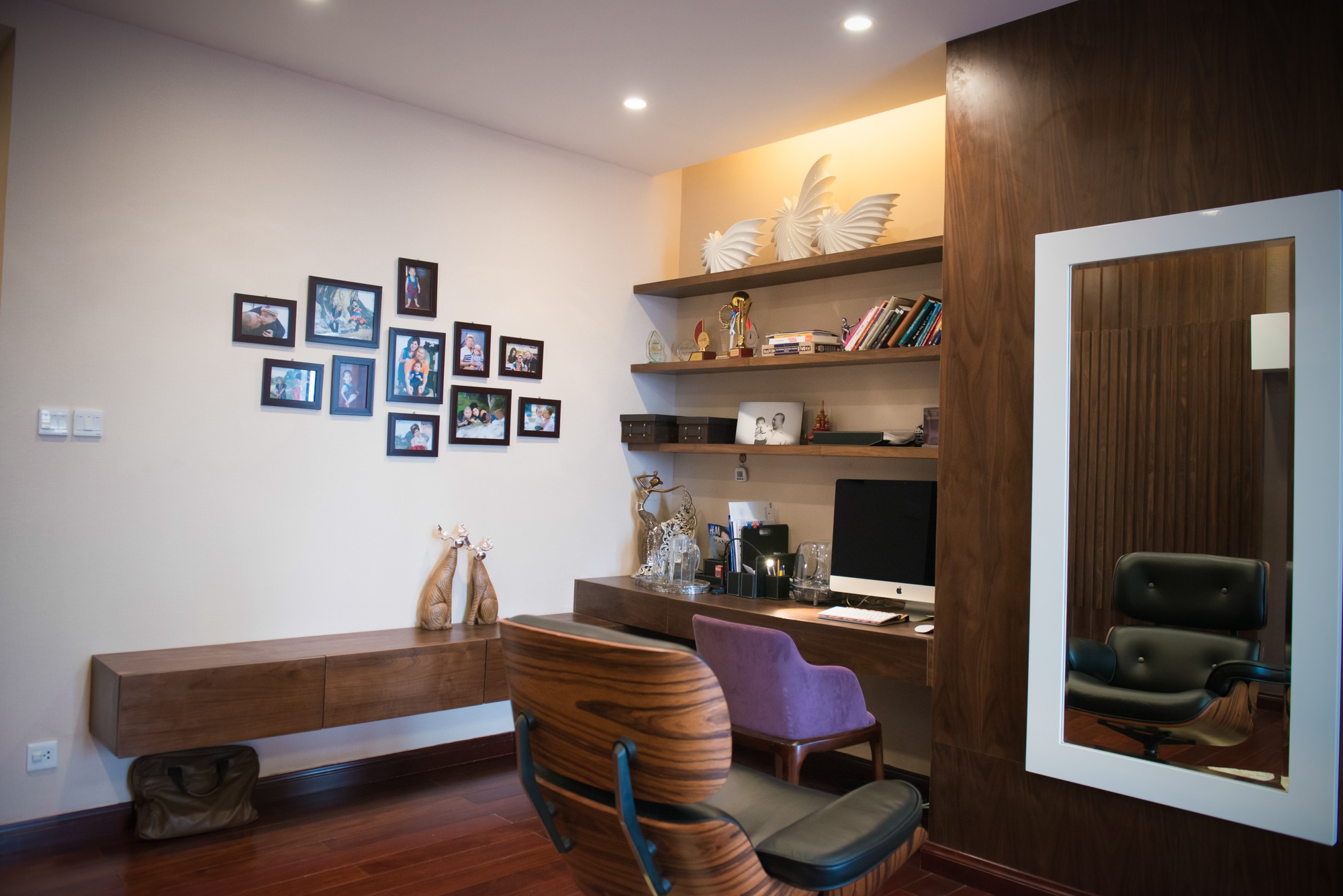 Góc làm việc nhỏ của Hải Anh được trang trí bởi nhiều hình ảnh của cả gia đình.