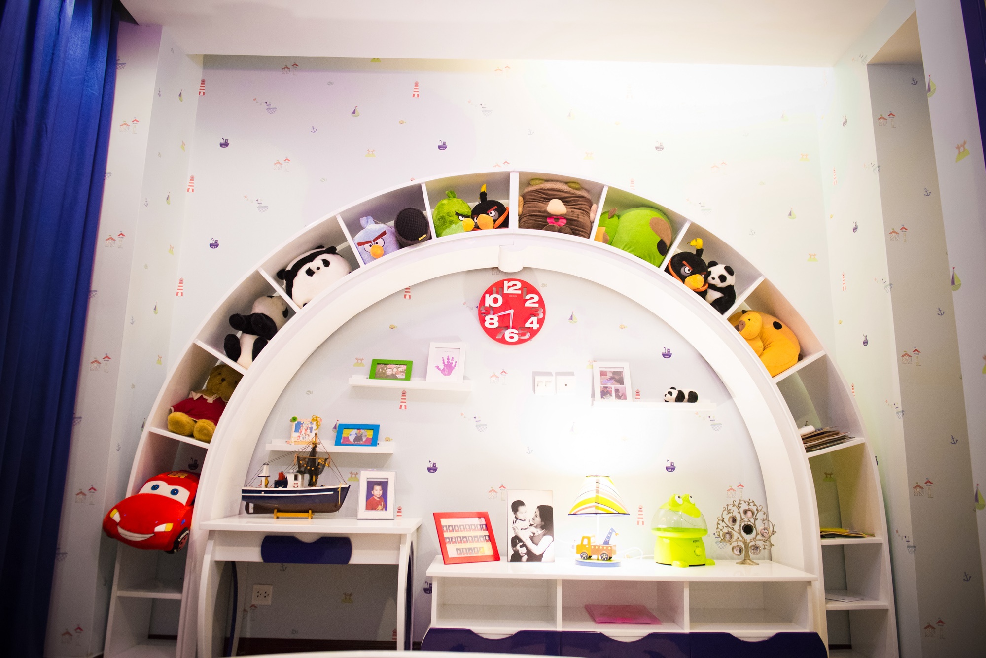 Khi được hỏi về không gian ưng ý nhất, Hải Anh không ngần ngại giới thiệu phòng riêng của cậu con trai tinh nghịch. Bàn học của cu Híp được thiết kế khá cầu kỳ với nhiều thú bông và những khung hình của cậu nhóc.