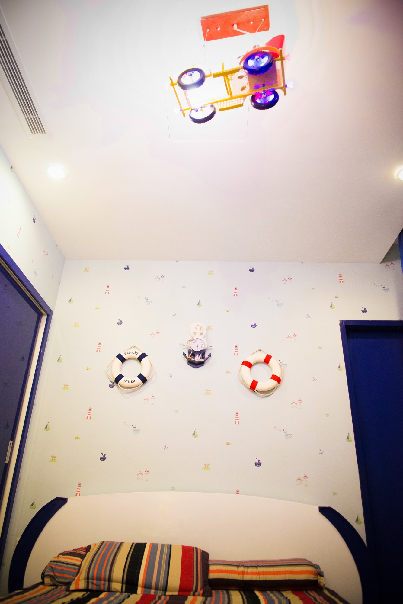 Không gian bên cạnh giường ngủ của cu Híp được trang trí khá đặc biệt và ấn tượng.