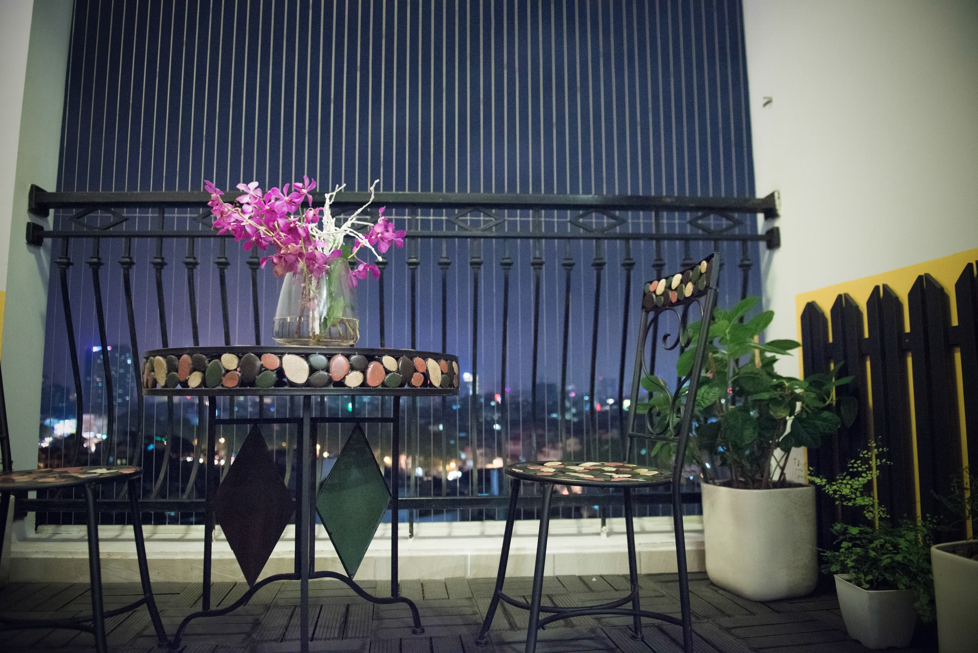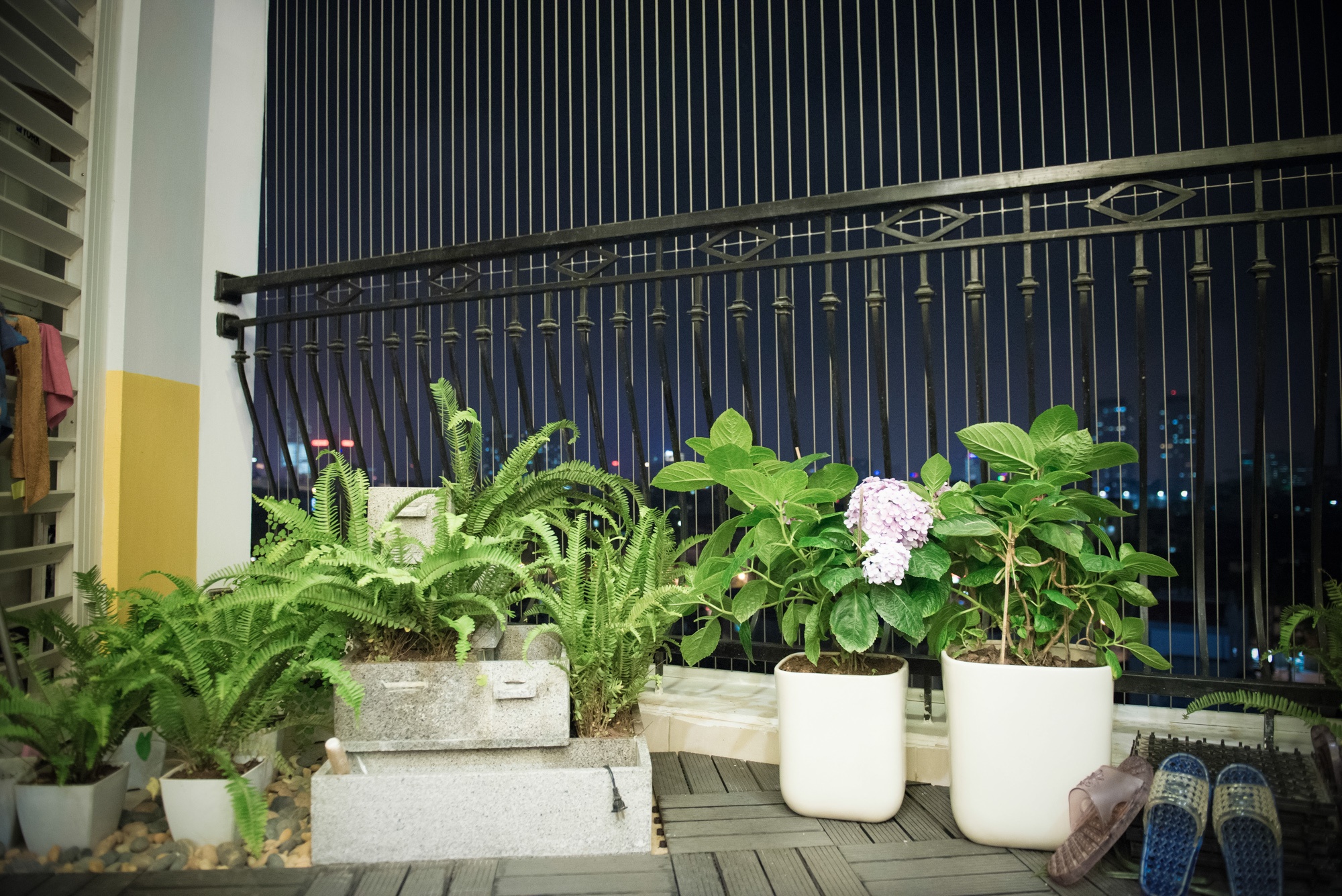 Góc nhỏ ngoài trời với hoa cỏ mà Hải Anh đặc biệt thiết kế cho những phút riêng tư của hai vợ chồng.
