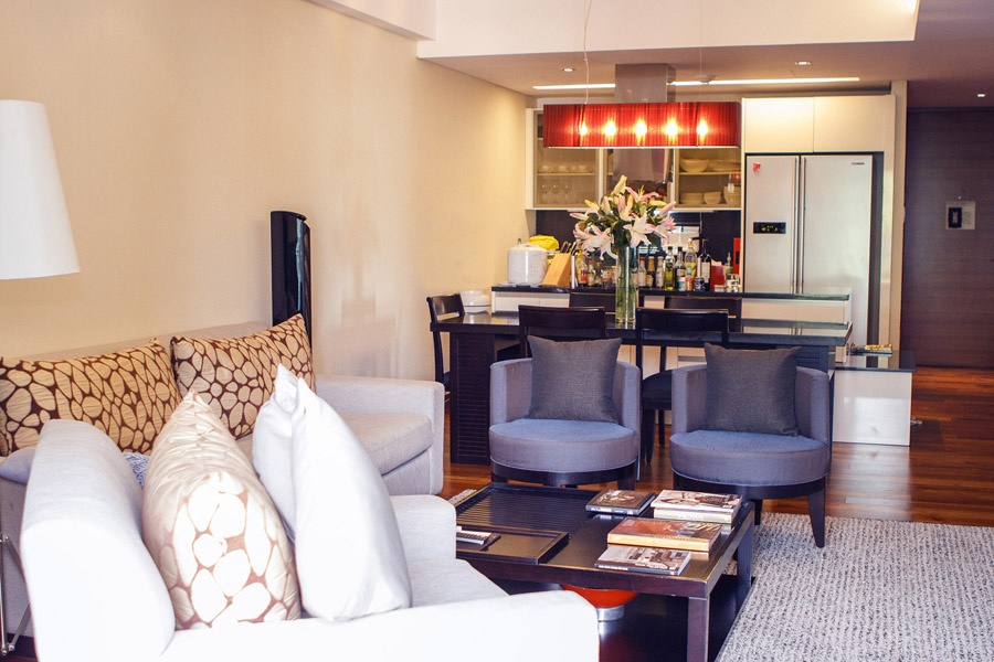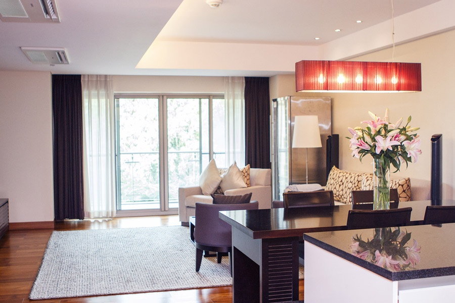 Căn hộ của người đẹp nằm ngay trung tâm quận 1, là khu chung cư cao cấp bậc nhất Sài Gòn, có giá cho thuê thấp nhất là 3000 USD. Căn hộ của Quỳnh Thy có diện tích rộng hơn 130 m2. Gam trắng xám là tông chủ đạo, tạo cảm giác thư thái, dễ chịu mỗi khi cô trở về nhà sau một ngày làm việc.