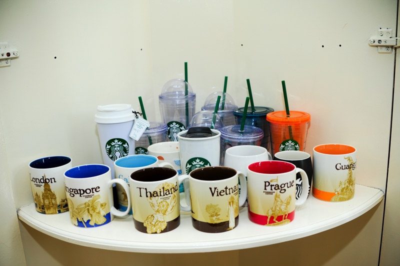 | Bộ sưu tập ly được anh sưu tầm trong những chuyến đi nước ngoài. |