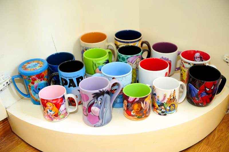| Một phần bộ sưu tập ly của nam ca sĩ. Anh là một tín đồ của Walt Disney và luôn mua rất nhiều những sản phẩm đáng yêu này mỗi khi đi du lịch. |