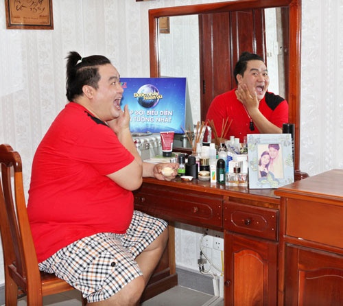 | Hoàng Mập sử dụng chung bàn trang điểm với vợ. Tấm bằng khen của chương trình Bước nhảy hoàn vũ được anh đặt ngay ngắn trên bàn. |