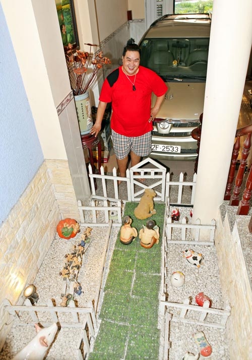| Hoàng Mập còn thiết kế một trang trại nhỏ rất đáng yêu ngay dưới tầng trệt. Đây cũng là nơi đậu xe hơi của gia đình. |