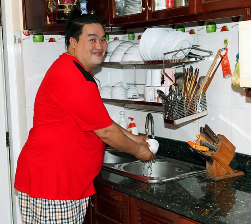 | Bận rộn với lịch diễn nhưng khi ở nhà, Hoàng Mập luôn hăng hái vào bếp giúp đỡ bà xã. Anh khoe vợ đảm đang, nấu nướng rất ngon và luôn là hậu phương vững chắc của mình. |