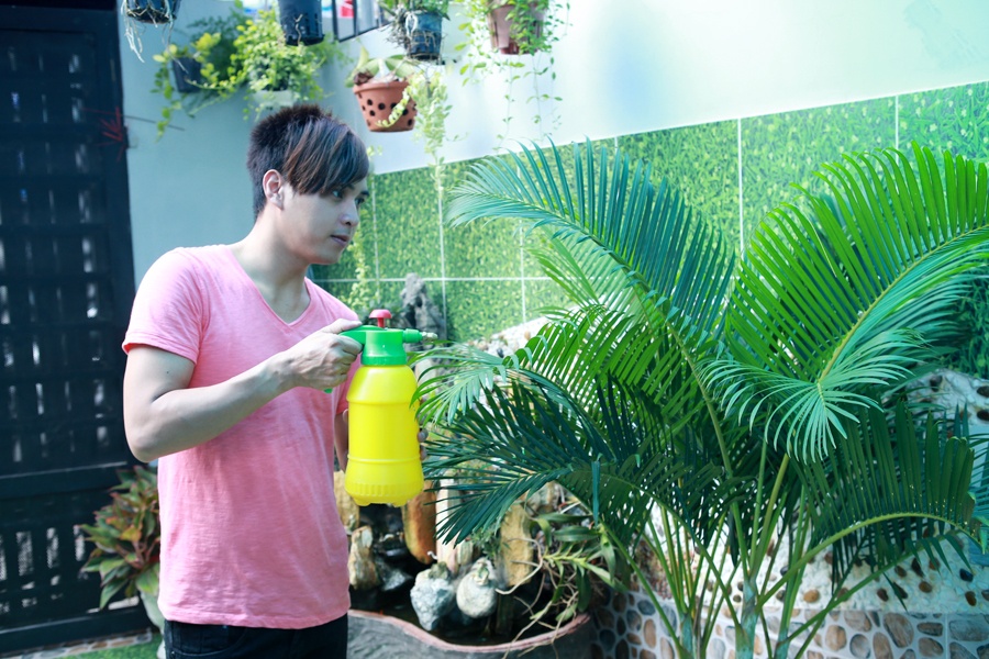 Khi có không có lịch diễn, Hồ Quang Hiếu thay mẹ tự tay chăm sóc những chậu cây mà anh yêu thích.