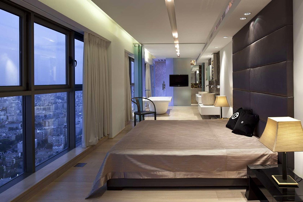 | Phòng ngủ với tầm nhìn được phóng xa nhờ tường kính rộng |