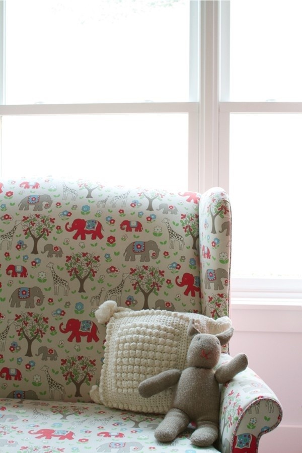 Ghé thăm căn phòng của cô bé Maja, bạn như lạc vào thế giới cổ tích thời hiện đại với những món nội thất xinh xắn và tiện ích được chuẩn bị cho riêng cho bé. Màu sắc vui nhộn, tươi mới cộng với những nội thất "đo ni đóng giày" khiến căn phòng 23m² này quả là một thiên đường cổ tích rộng rãi đối với cô bé 2,5 tuổi như Maja. Đầu tiên là phải kể đến chiếc sofa kê bên cửa sổ - nơi Maja thường ngồi chơi với bạn hoặc được bố mẹ kể chuyện cho nghe hàng ngày. Dù không lớn nhưng chiếc sofa êm ái nhờ lớp nệm dày này rất xinh xắn với họa tiết voi xen kẽ.
