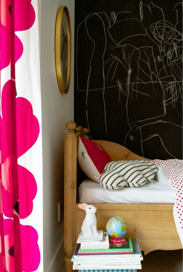 | Bức tường đen có thể lau sạch dễ dàng giúp cô bé tha hồ viết vẽ theo sở thích. |