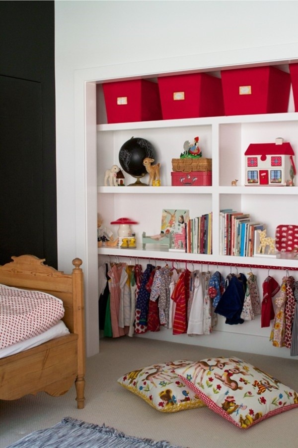 | Quần áo treo ở ngăn thấp nhất để Maja có thể tự chọn trang phục yêu thích của mình mỗi ngày. Ngăn trên cùng là những hộp lưu trữ cá nhân để căn phòng trở nên gọn gàng, ngăn nắp. |