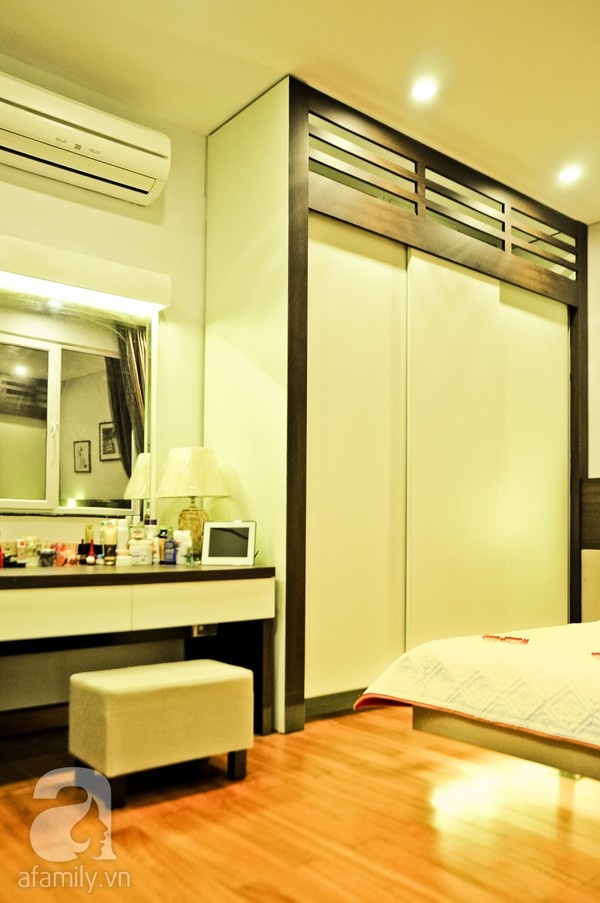 | Bàn phấn và tủ quần áo bố trí gọn gàng. |