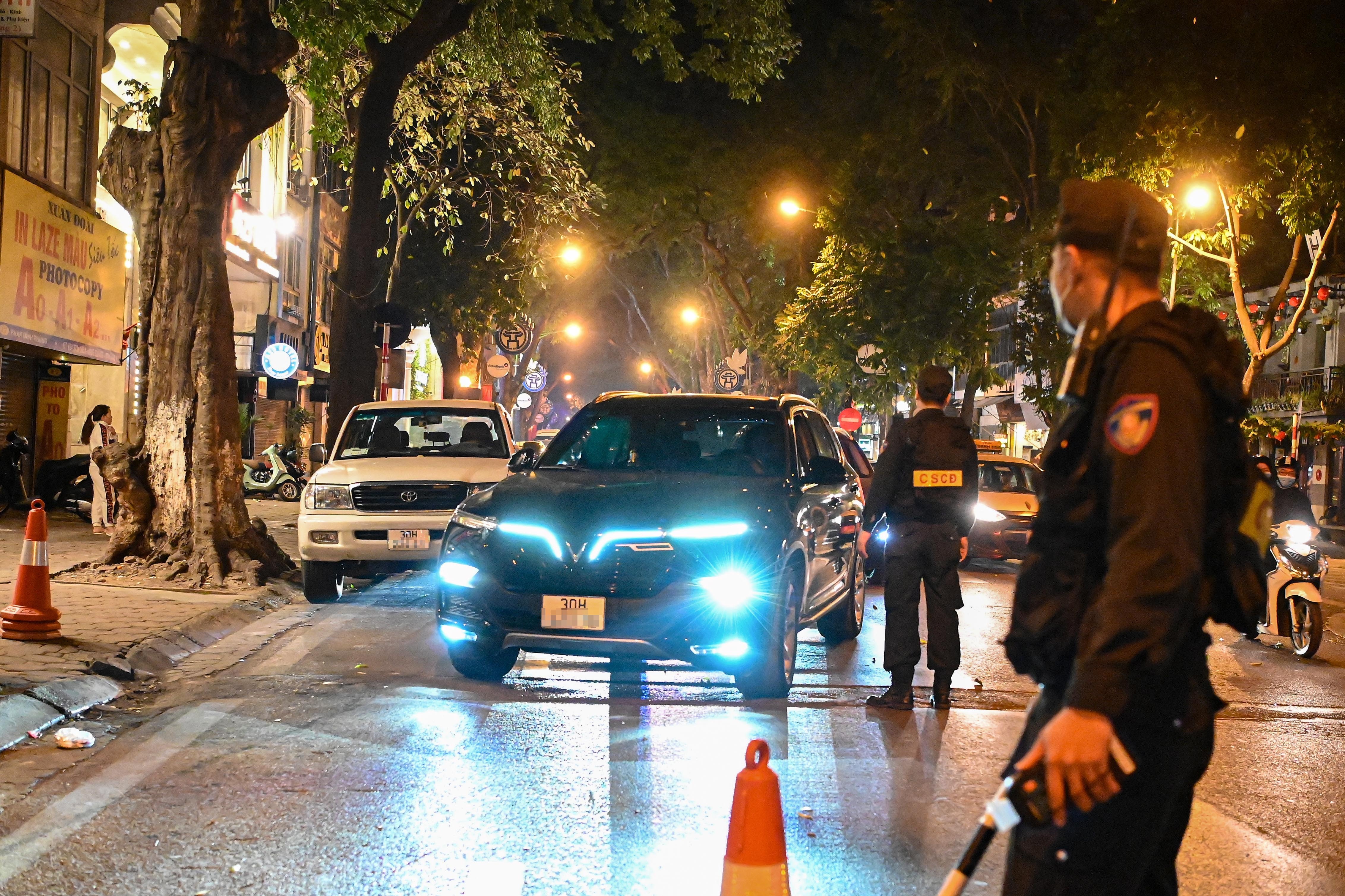 | Cảnh sát kiểm soát nồng độ cồn xuyên Tết ở Hà Nội. Ảnh: Hồng Quang. |