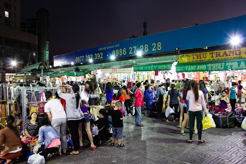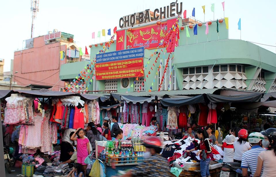 Chiều 27 Tết, tại chợ Bà Chiểu, quận Bình Thạnh, nhiều gian hàng thời trang đồng loạt xả hàng với mức giá "chạm đáy". Quần áo được chất đống trước chợ với giá mỗi sản phẩm chỉ từ 10.000 - 35.000 đồng. Người bán bắt loa rao huyên náo khiến nhiều người đi đường dựng xe ngay dưới lòng đường chen mua.