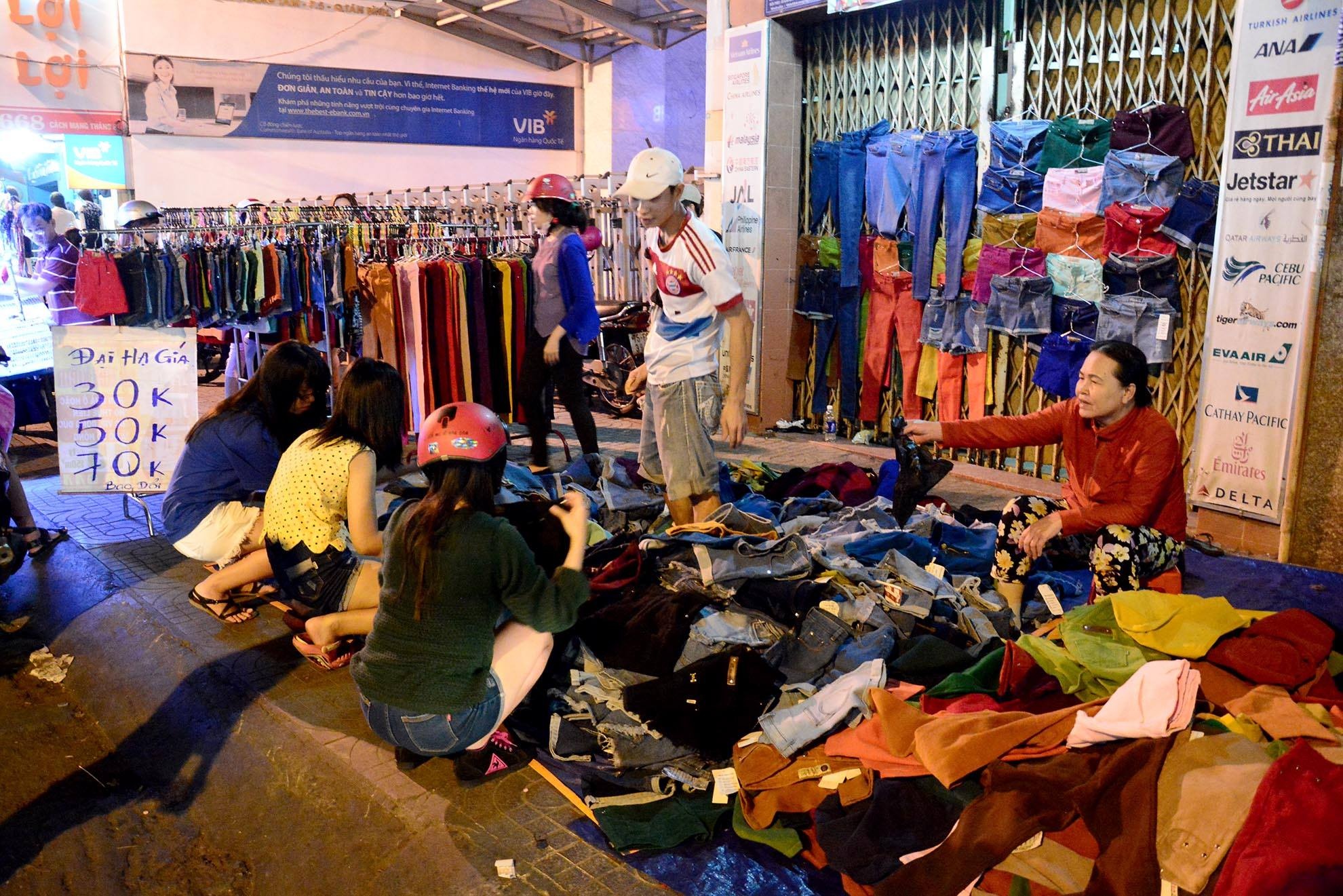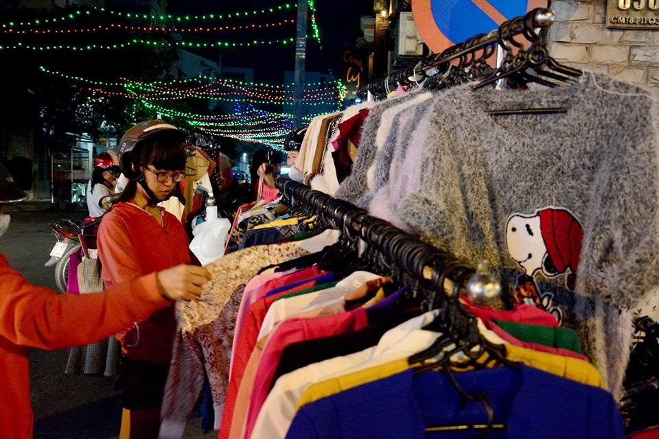 Nhiều tuyến đường khác tại các quận 3, Tân Bình, quận 10...., quần áo đổ đống bán giá rẻ dưới 70.000 đồng/sản phẩm cũng hút đông khách chọn mua.
