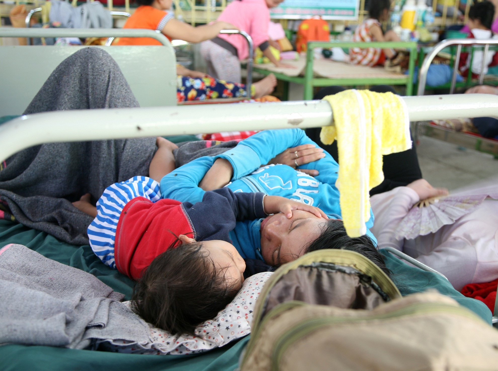 Nhiều phụ huynh ở Khánh Hòa tạm gác mọi công việc để chăm sóc con trẻ bệnh sốt xuất huyết.
