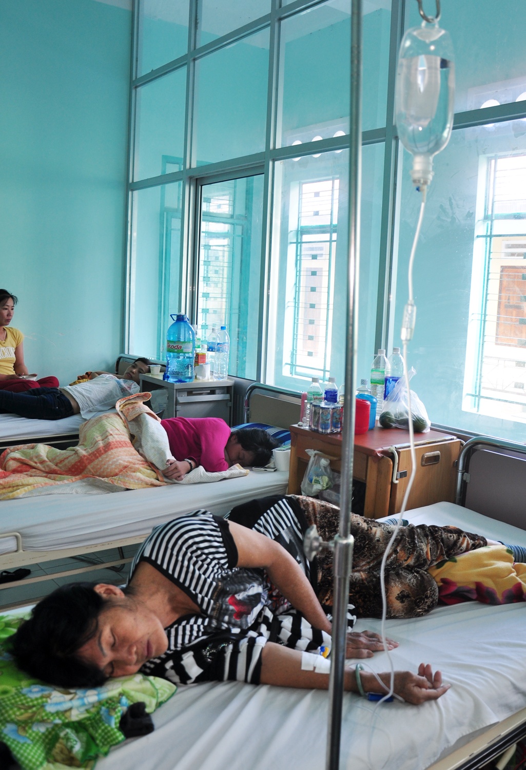 Khoa truyền nhiễm, Bệnh viện đa khoa khu vực Ninh Hòa có 70 giường, nhưng phải thường xuyên tiếp nhận 150 - 180 bệnh nhân sốt xuất huyết điều trị. Các khoa phải kê thêm giường dọc theo hành lang để tiếp nhận.
