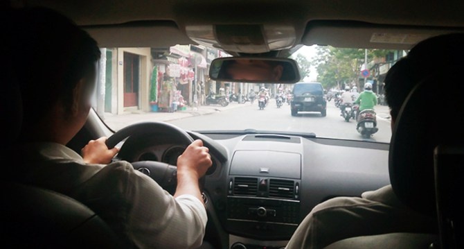 Phóng viên trải nghiệm Uber cùng lái xe T. |