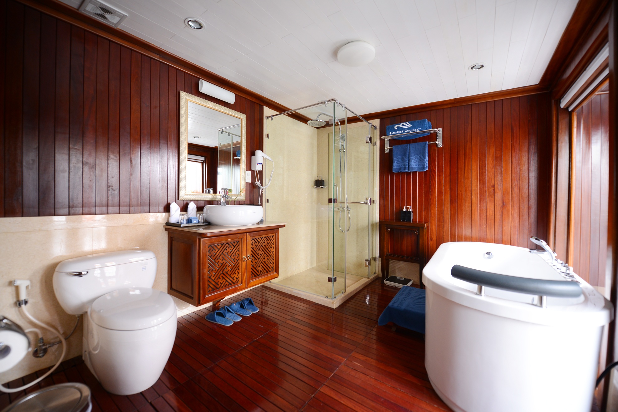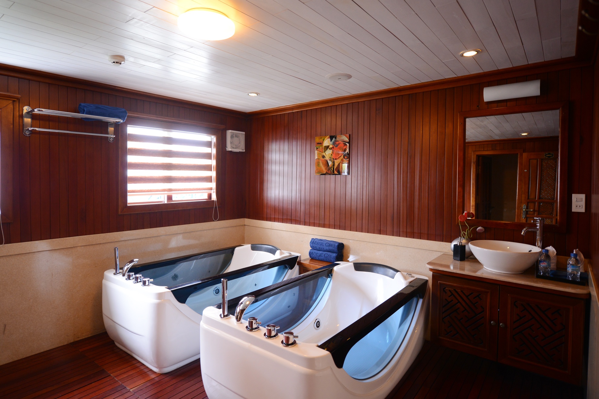 | Tàu có 8 phòng (từ 38 đến 42m2), được thiết kế sang trọng như một khách sạn nổi trên biển. |