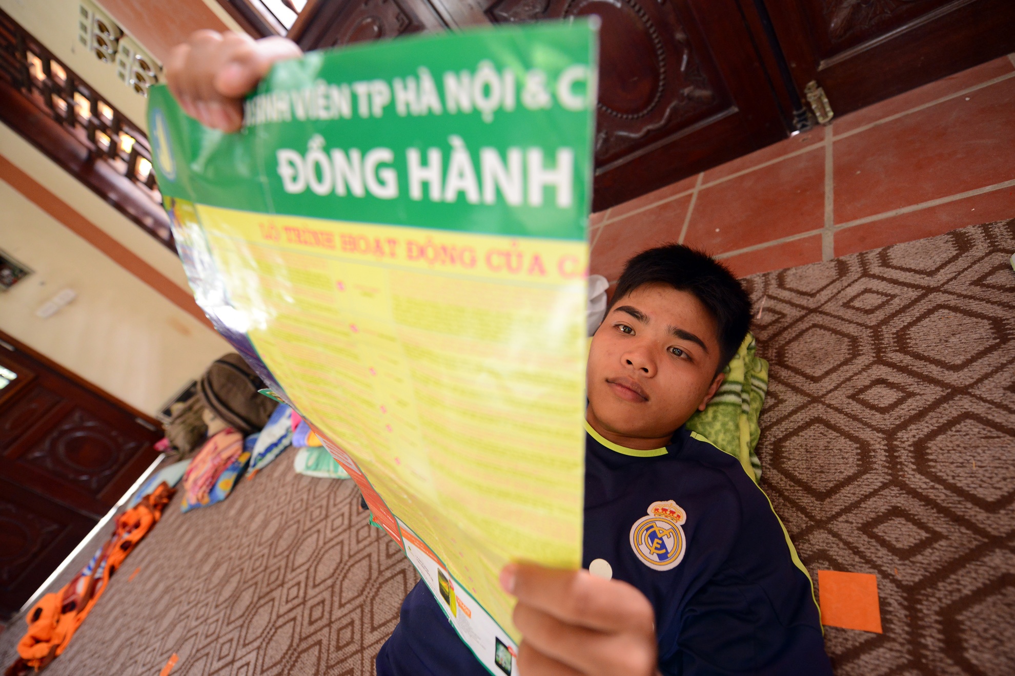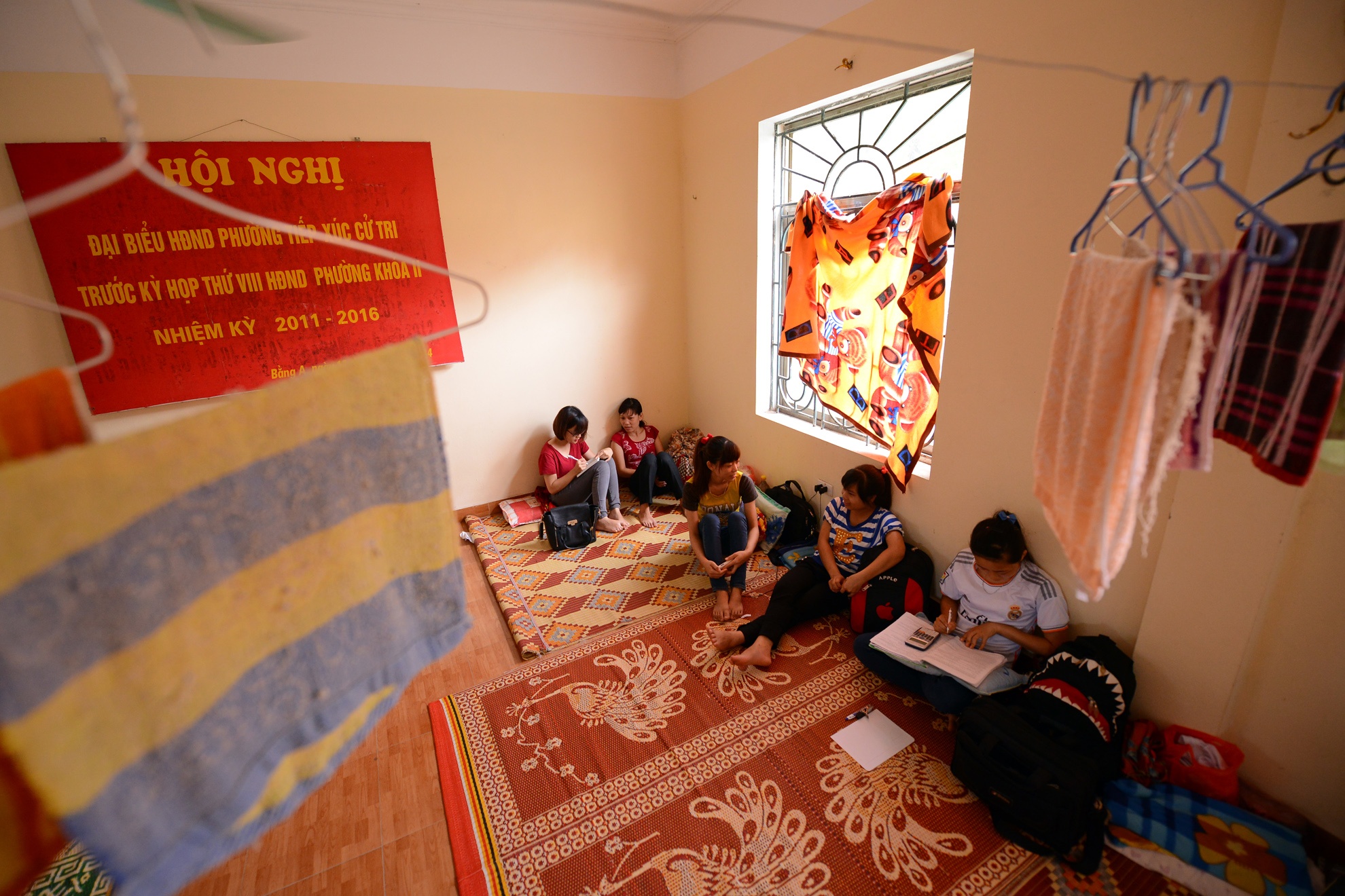 | Thí sinh Phạm Thị Tâm Lan và phụ huynh Phạm Văn Phục cảm thấy hài lòng khi được ở trọ tại đây. Hai bố con mới từ Lào Cai về Hà Nội sáng 2/7, nữ sĩ tử sẽ thi vào Học viện An ninh nhân dân. Ông Phục kể, khi vừa đến bến xe đã được các bạn tình nguyện viên đón và đưa về chùa. |