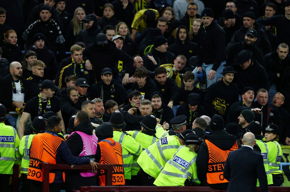 Bầu không khí tại sân Villa Park nhanh chóng vượt khỏi tầm kiểm soát khi nhóm CĐV Young Boys liên tục gây rối, ném vật thể xuống sân và xô xát với lực lượng an ninh.