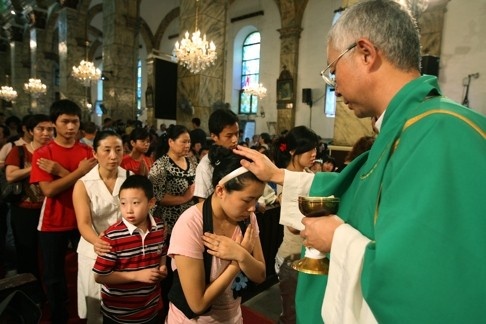| Các giáo dân trong một buổi lễ tại nhà thờ Công giáo ở gần khu Sanlitun. Ảnh: SCMP |