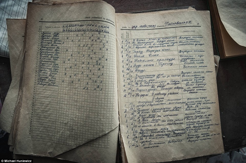 Danh sách học sinh của một trường tại thành phố Pripyap. 36 tiếng sau vụ nổ, chính quyền Liên Xô quyết định di tản toàn bộ dân cư sinh sống xung quanh nhà máy điện hạt nhân Chernobyl trong vòng bán kính 30 km.