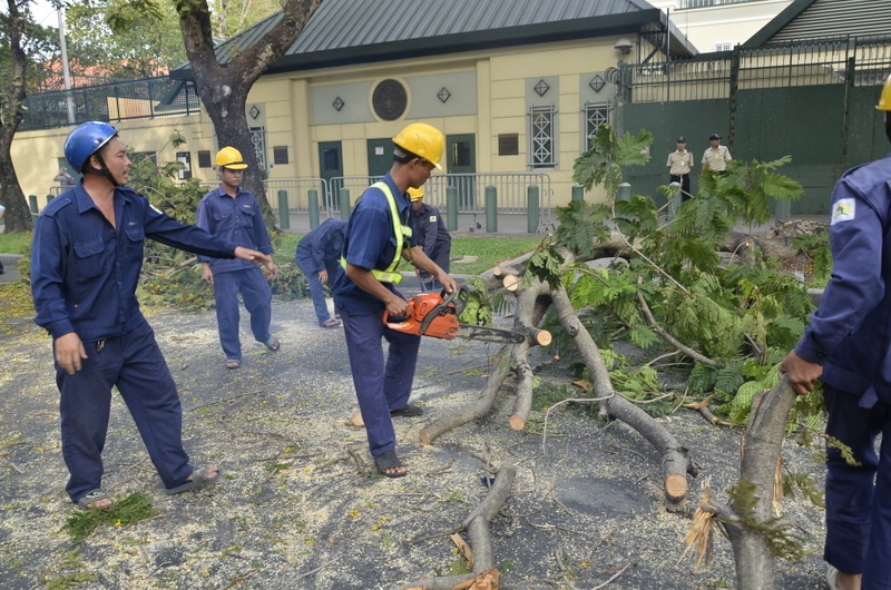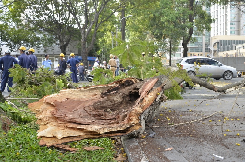 Tại hiện trường, nhánh cây đè lên 2 xe gắn máy và chiếm hết lòng đường. Nhận được tin báo, Đội Cảnh sát giao thông Bến Thành, công an phường Bến Nghé và các nhân viên Công ty Công viên cây xanh thành phố đã có mặt để bảo vệ hiện trường.