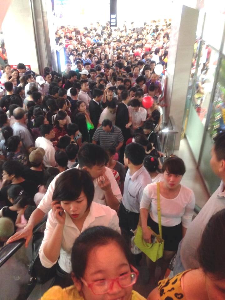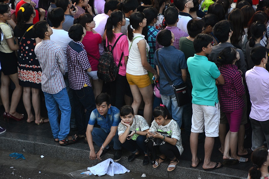 | Dòng người đổ về ngày một đông, tình trạng chen lấn, xô đẩy diễn ra tại trung tâm thương mại này. Người già, bà bầu, trẻ nhỏ cũng không được ưu tiên. Những người đến sau không thể chen vào trong vì quá đông. |