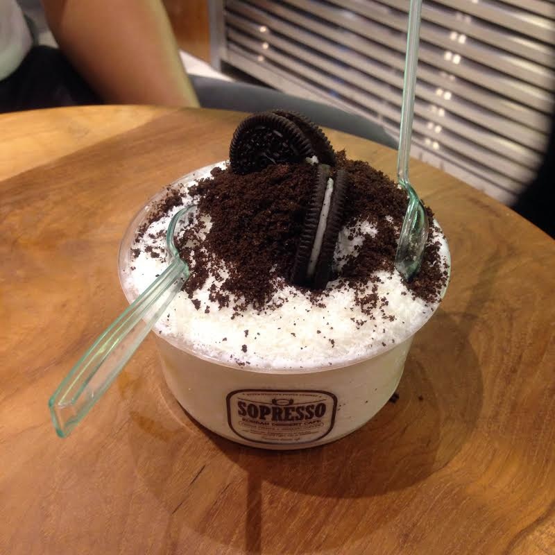 | Tầng 6 là tầng ẩm thực tuy nhiên có khá ít nhà hàng, phần lớn là các thương hiệu ẩm thực Hàn Quốc và một số nước Châu Á. Theo chia sẻ của Phương Anh và nhóm bạn đi cùng, giá hàng hóa và đồ ăn uống tại đây khá cao. Sau nhiều đắn đo, nhóm bạn chọn ăn kem Hàn Quốc với giá 60.000 đồng/cốc. Phương Anh cho biết, tại quán này có khá đông nhân viên phục vụ là người Hàn. Ảnh: NVCC. |
