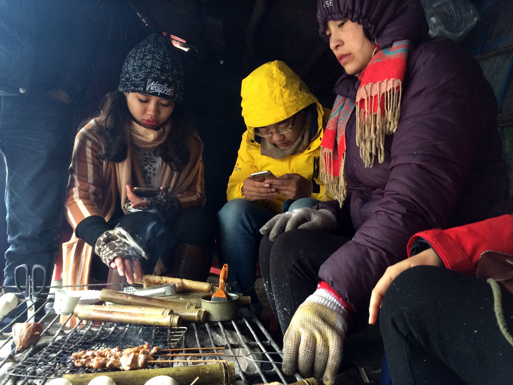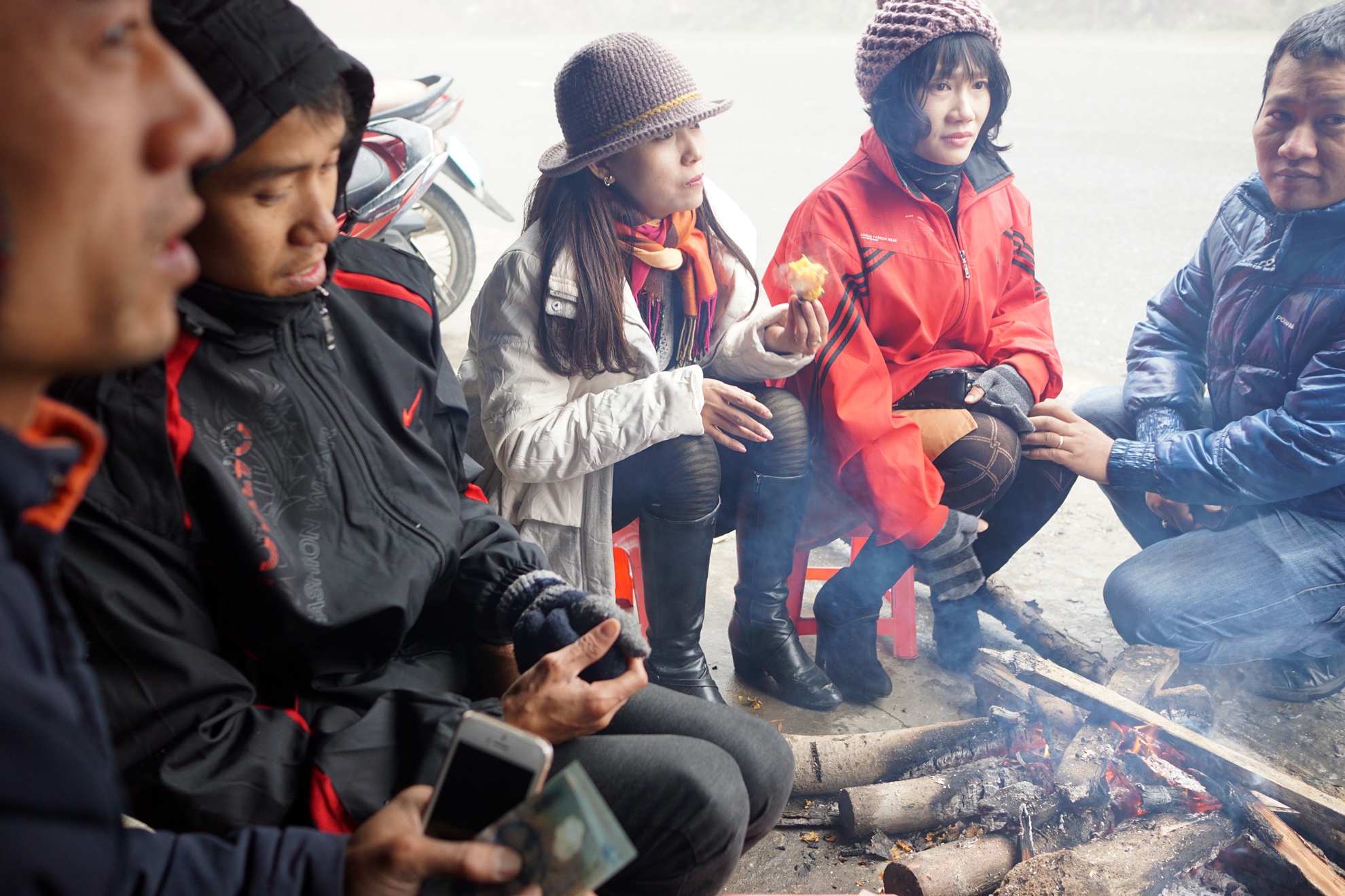 | Các du khách người Việt lại có sở thích quây quần bên đống lửa của hàng quán bên đường sưởi ấm và ăn vặt. |