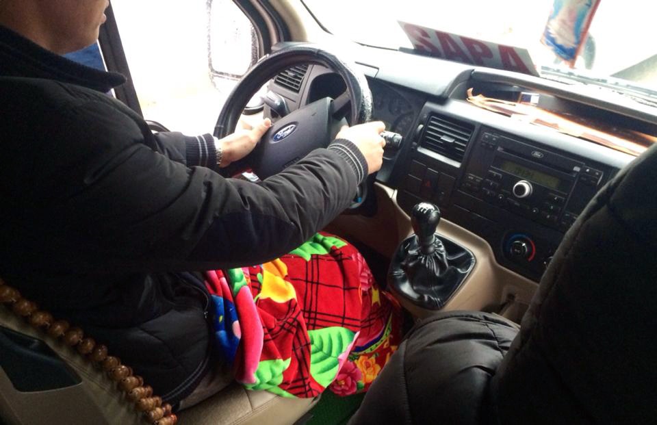 | Tài xế cũng phải quấn chăn vào chân khi lái để chống giá lạnh. |