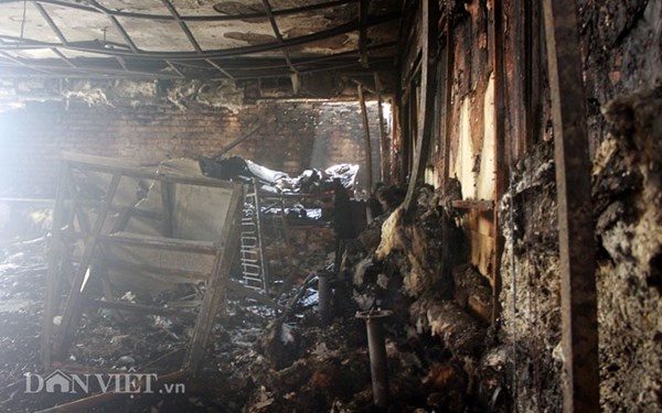 | Bên cạnh đó, tường và trần của gian phòng này cũng bị ngọn lửa làm bung vỡ. |