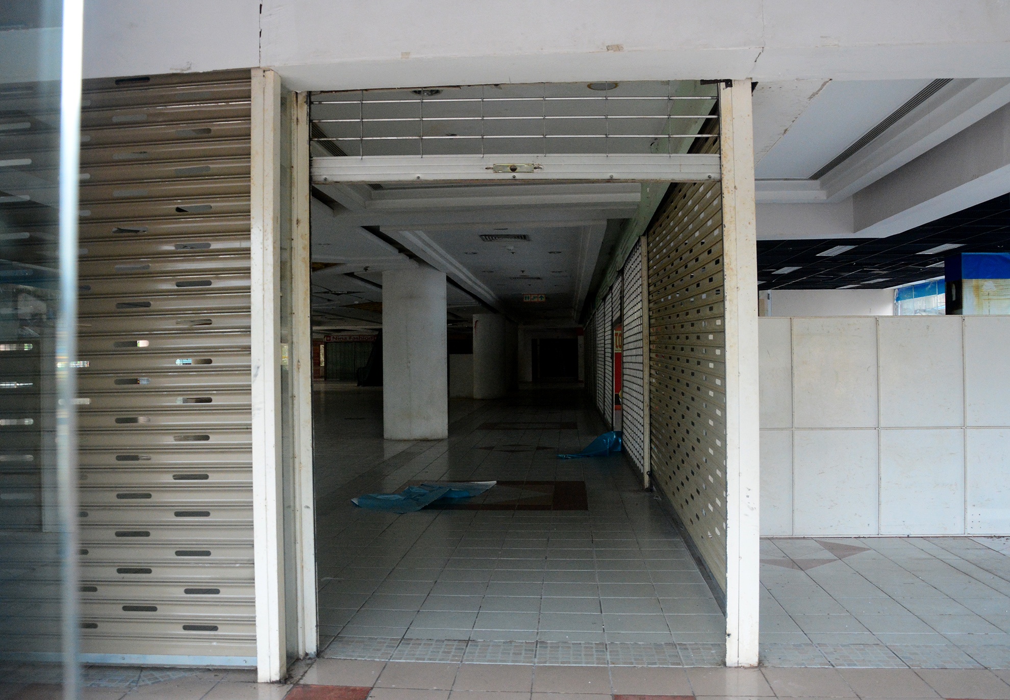 Bên trong khu thương mại chỉ còn lại những gian hàng trống không.