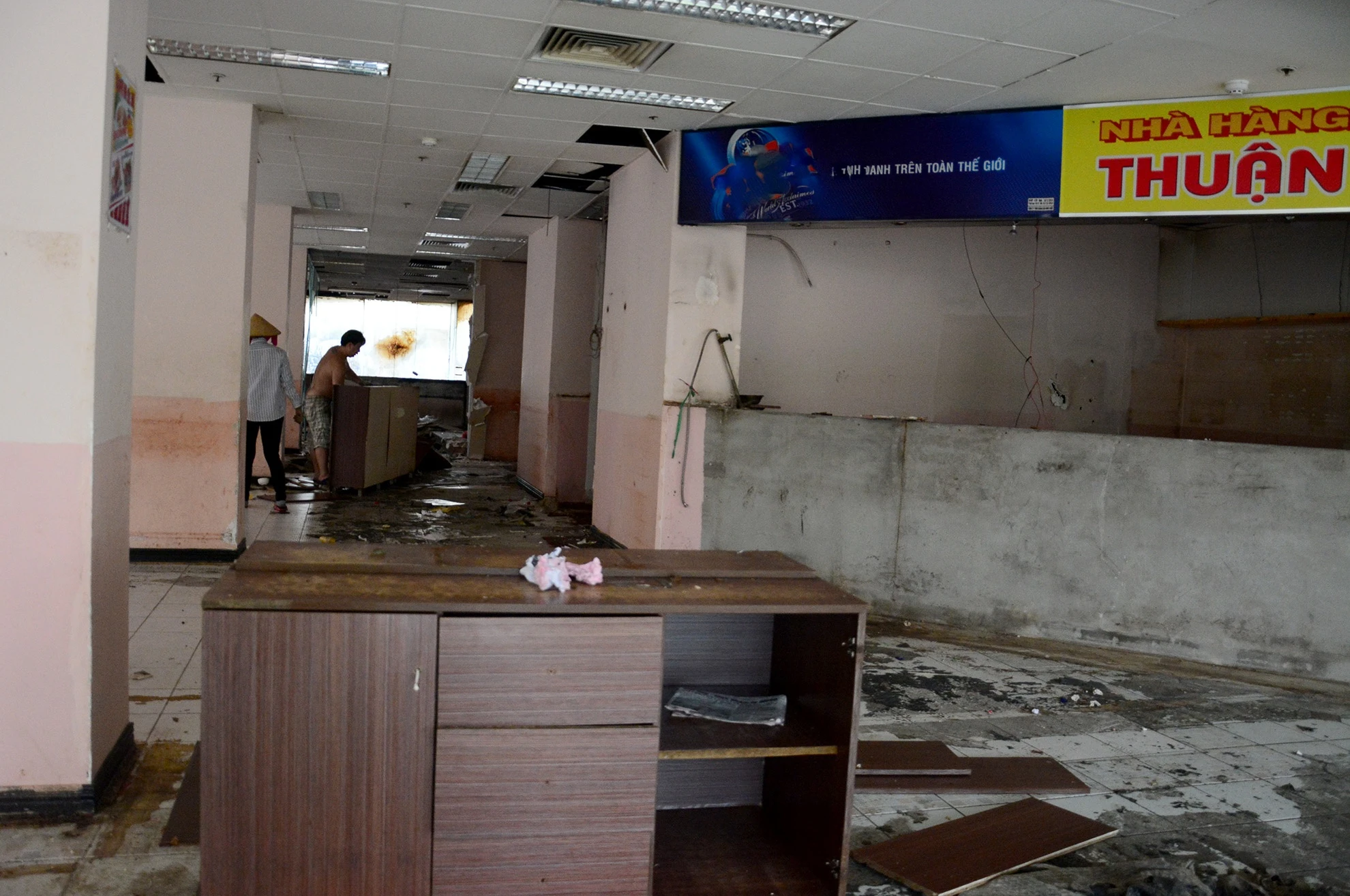 Một số người, trong đó có dân thu gom ve chai, tìm kiếm những gì còn sót lại của nhà hàng vừa mới chuyển đi từ đầu tháng 10/2015.