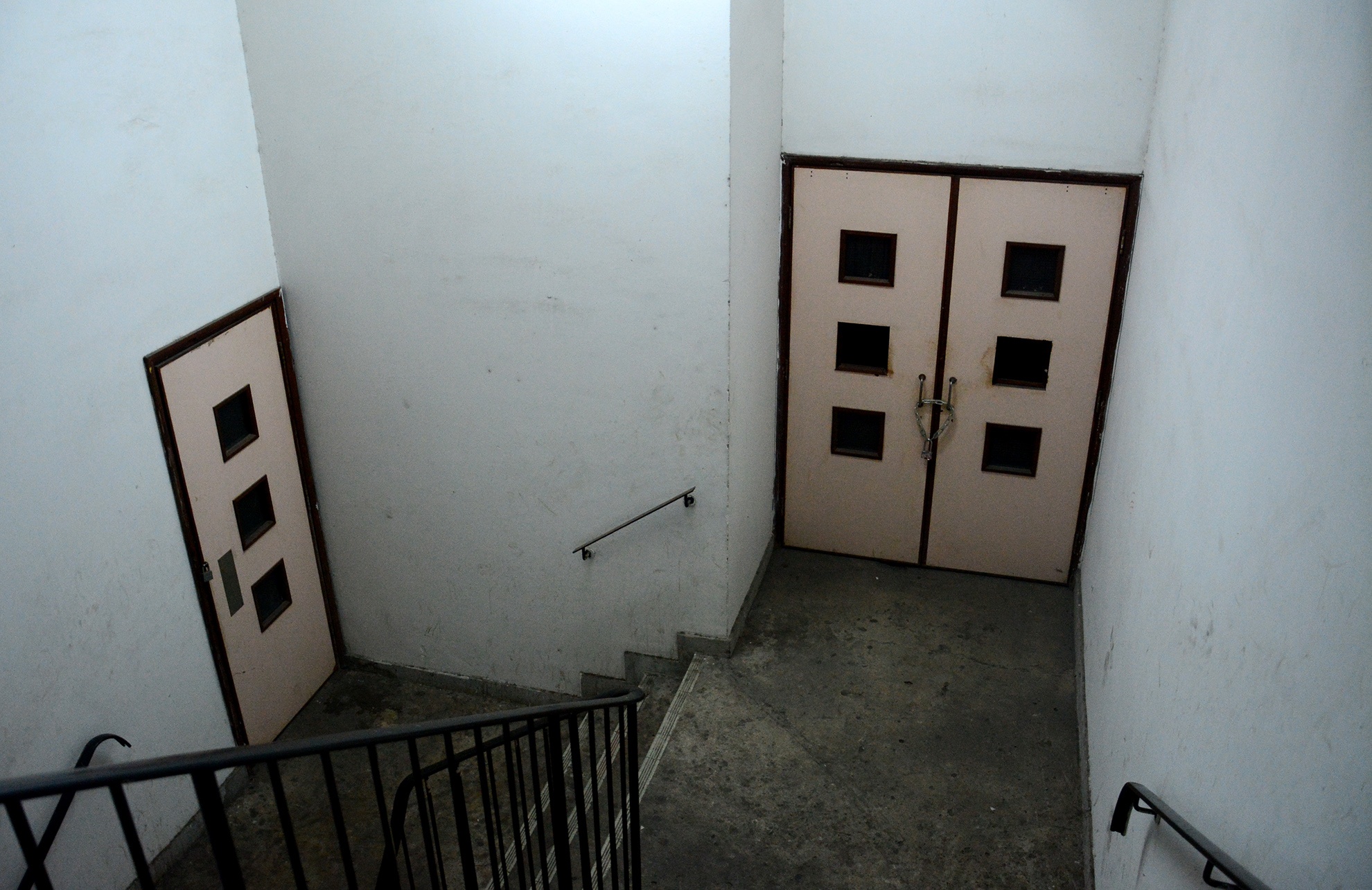 | Bên trong, các cánh cửa đã được khoá chặt. Những người không liên quan, hoặc không sống trong toà nhà khó có thể vào được. |