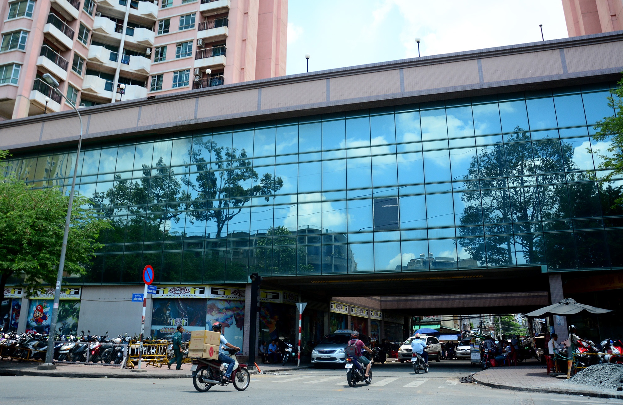 Ở Thuận Kiều Plaza có một con đường chạy xuyên bên dưới tòa nhà.
