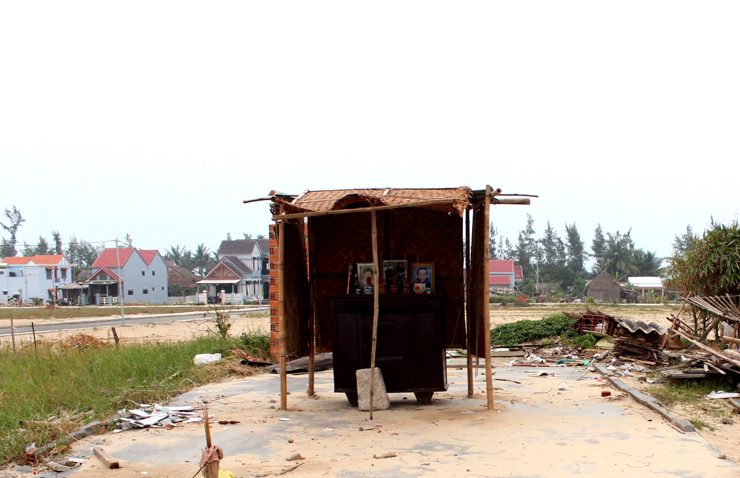 | … Hoặc trơ trọi giữa nền xi măng. Đây là phần còn sót lại sau bão của căn nhà của bà Nguyễn Thị Sanh. |