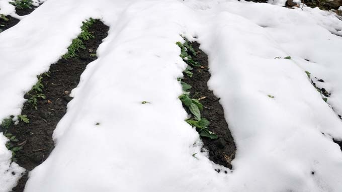 | Nhiều vườn rau vẫn chưa tan hết tuyết. |
