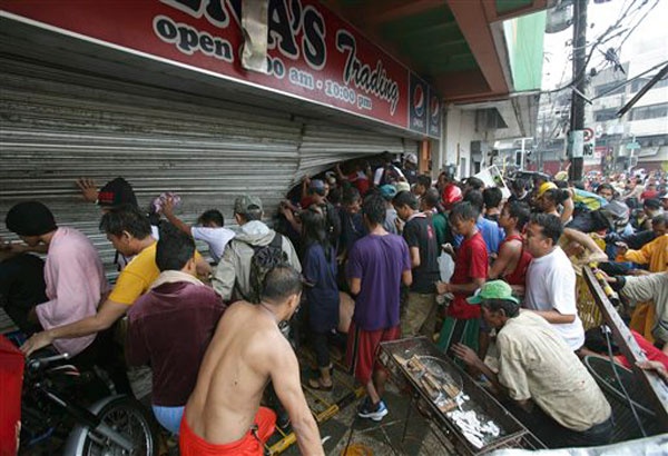| Hàng trăm người phá cửa của một siêu thị để hôi của tại thành phố Tacloban, tỉnh Leyte hôm 9/11. Ảnh: slate.com. |