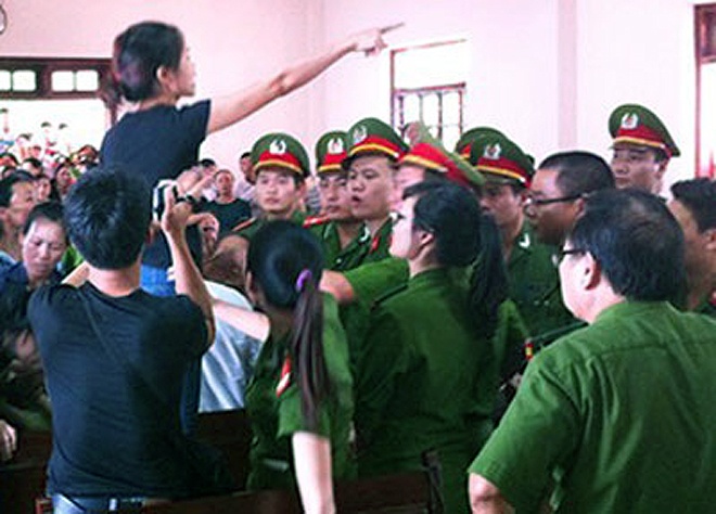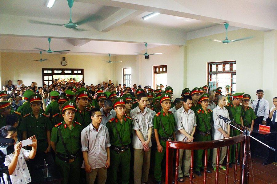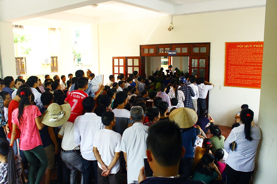 Trong 3 ngày (13 - 15/7), phiên tòa sơ thẩm lần hai xét xử vụ án "quan tài diễu phố" xảy ra ở TP Vĩnh Yên (Vĩnh Phúc) thu hút hàng trăm người đến theo dõi. Do phòng xử án không đủ chỗ, nhiều người đứng tràn ra ngoài hành lang.